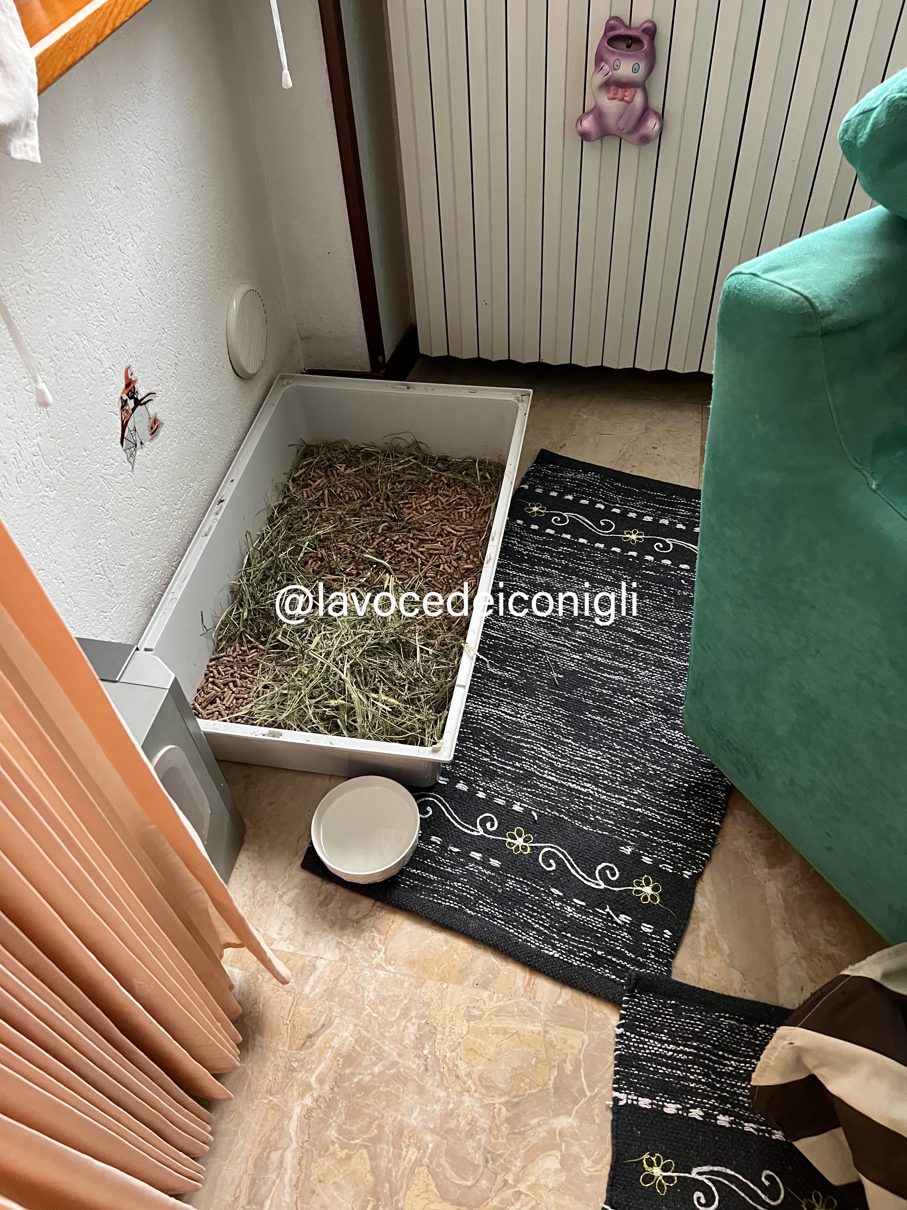 Purtroppo le persone mettono in gabbia il coniglio un po’ perché fà parte di un retaggio arcaico che ci trasciniamo dietro dalle vecchie abitudini contadine, un po’ perché sporca con pipì e feci, perché rosicchia fili, mobili e tappeti... diciamo che la gabbia è la soluzione più facile, ma mai quella giusta!
